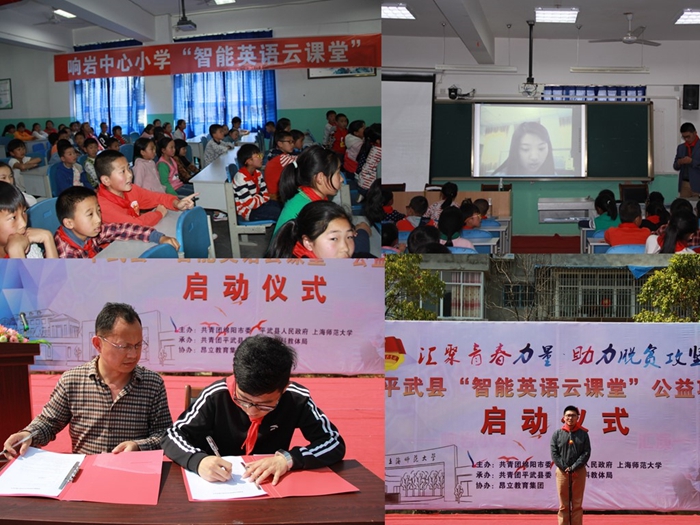 为响应国家号召,将创新创业实践与乡村振兴战略、精准扶贫脱贫相结合,推动创新创业教育与思想政治教育相融通,打造师大有温度的高校思政课。4月3日,共青团绵阳市委携手共青团上海师范大学委员会在平武县响岩镇中心小学举行“互联网+教育脱贫”云课堂项目启动仪式,开启师大创业团队助力脱贫攻坚的“互联网+教育脱贫”新模式。上海师范大学、昂立教育集团昂立商学院、团市委、平武县相关负责同志,平武县首期开课5所学校校长、响岩镇中心小学全体师生参加了启动仪式。