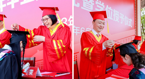 毕业生代表,环境与地理科学学院博士毕业生徐丹回忆了在师大本、硕、博十年的求学生涯,表达了对母校和师长最真挚的感谢。师大的学习经历坚定了她成为“绿水青山守护者”的信念,努力践行习近平总书记的生态文明思想。毕业后,她将回到家乡福建,作为博士选调生扎根生态环境保护一线工作。