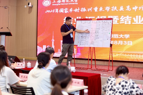 7月29日-8月4日,上海师范大学承办了2023年国家乡村振兴重点帮扶县高中语文骨干教师培训开班。来自四川、贵州、云南、广西、重庆五个省市普通高中的120位语文学科骨干教师参加培训。培训安排了专题讲座、工作坊研修等学习内容,同时还安排了中共一大会址、中华艺术宫、上海博物馆、上海师范大学嘉定附属高级中学等历史文化场馆和中学参观,以开拓学员的视野,加强对光辉的革命史、深远的中华文化和上海基础教育发展的了解。