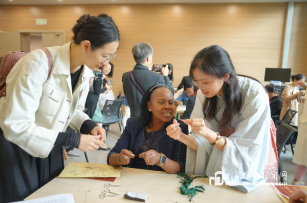 民心相通增友谊,文化交流促发展。值此“一带一路”倡议提出10周年,欧美同学会成立110周年之际,上海市欧美同学会上海师范大学分会于10月20日在联合国教科文组织教师教育中心举办了一场别开生面的民间外交活动。活动以“习顾绣,品江南”为主题,将上海本土国家级非遗顾绣与江南丝竹相结合,邀请联合国教科文组织驻华代表处及“一带一路”共建国家教育行政官员与欧美同学会的学长们共同赏析研习,活动现场气氛热烈,互动积极。