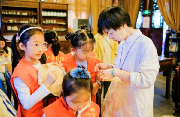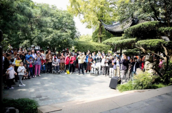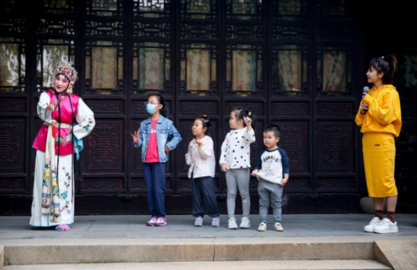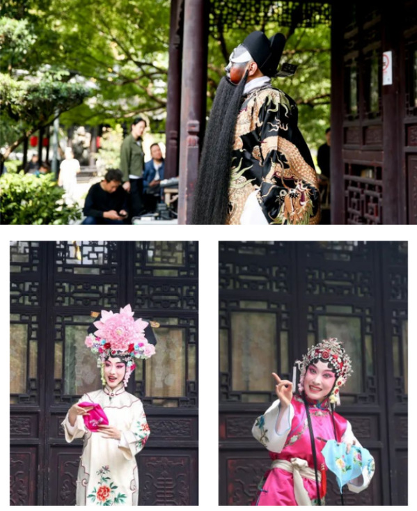 活动中,青年演员们还开展了现场教学,邀请观众亲身体验了戏曲服装和角色表演。戏曲之韵与园林之美相映成趣,游客们闻声而来、驻足观赏,在古典雅致的天然剧场里感受“园中有曲、曲中有园”的京剧艺术魅力。