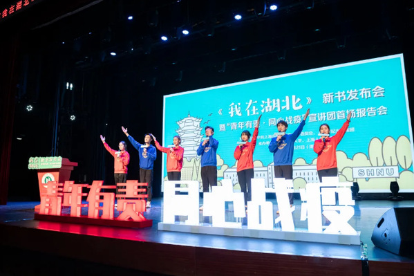 疫情期间,上海师范大学576名学生身在湖北,其中95人在武汉。每一位身居疫情“震中”的湖北学生都有一段不同寻常的历史记忆。在当天的发布会现场,由《我在湖北》的作者联合市内西南片高校师生组成的“青年有责·同心战疫”宣讲团进行了首场报告会,为现场观众讲述那些难忘的记忆。