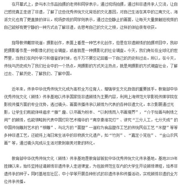 标题:“镜头里的非遗顾绣”摄影展在上海师范大学举办