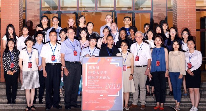 5月17日,第五届上海师范大学与美国纽约州立大学奥斯威戈分校合作举办的中美大学生学术论坛在我校商学院举行。