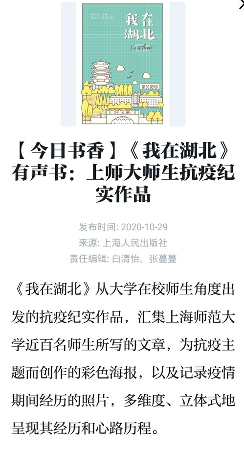 标题:《我在湖北》有声书:上师大师生抗疫纪实作品