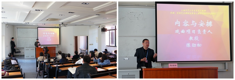 影视项目负责人王翔宇、戏曲项目的负责人陈劲松则分别介绍了此次影视与戏曲的培训内容与安排,希望通过培训,能切提高教师的教学实践能力。