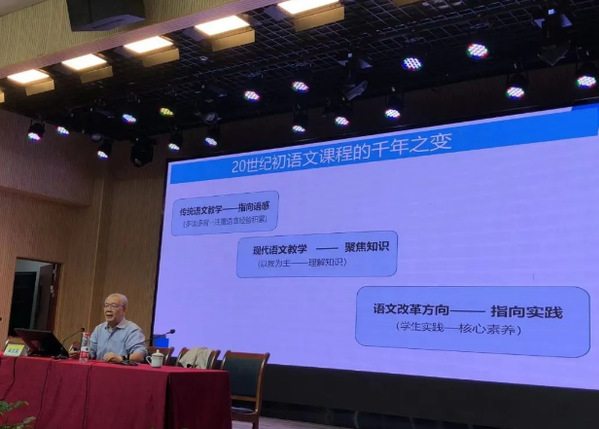 “在上世纪二十年代语文改为白话文教学以来,教育界长期纠结于探索教什么知识最有价值,课程内容一直发生变化,然而始终难以破解语文课程‘高耗低效’的死结。”在报告中,吴忠豪分析了语文课程内容的变化:五六十年代以汉语文学知识、基本技能为主;八九十年代注重学法指导,包括阅读、写作方法;新世纪以后注重语文要素,包括语文知识、方法策略、学习态度和学习习惯。