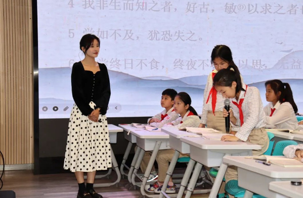 11月3日,全国高等师范院校小学语文课程与教学学术研讨会暨中国语文报刊协会课程与教学专业委员会首届年会在沪召开。当天下午,上海市松江区学科首席教师、正高级教师郑艳与上海师范大学第一附属小学教师汪娜现场给上海师范大学附属杨浦滨江实验小学孩子们上了两节公开课。