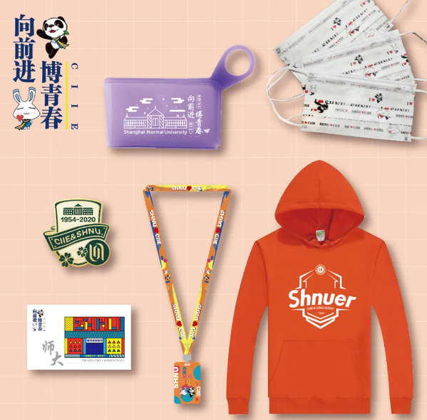 专属卫衣,送上秋天的“第一份温暖”;进博会专属卡套及徽章,让大家把学校牢牢装进心里;专属明信片,可以让今年的“小叶子”给明年的“小叶子”写封信,寄去期待与祝福;为志愿者提供专属口罩和口罩包,希望大家时刻注意自身健康防控!