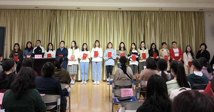 在接下来的环节中,学院党委书记刘岚为学院2020年新聘的16位2020级优秀研究生党员颁发了导生聘书。