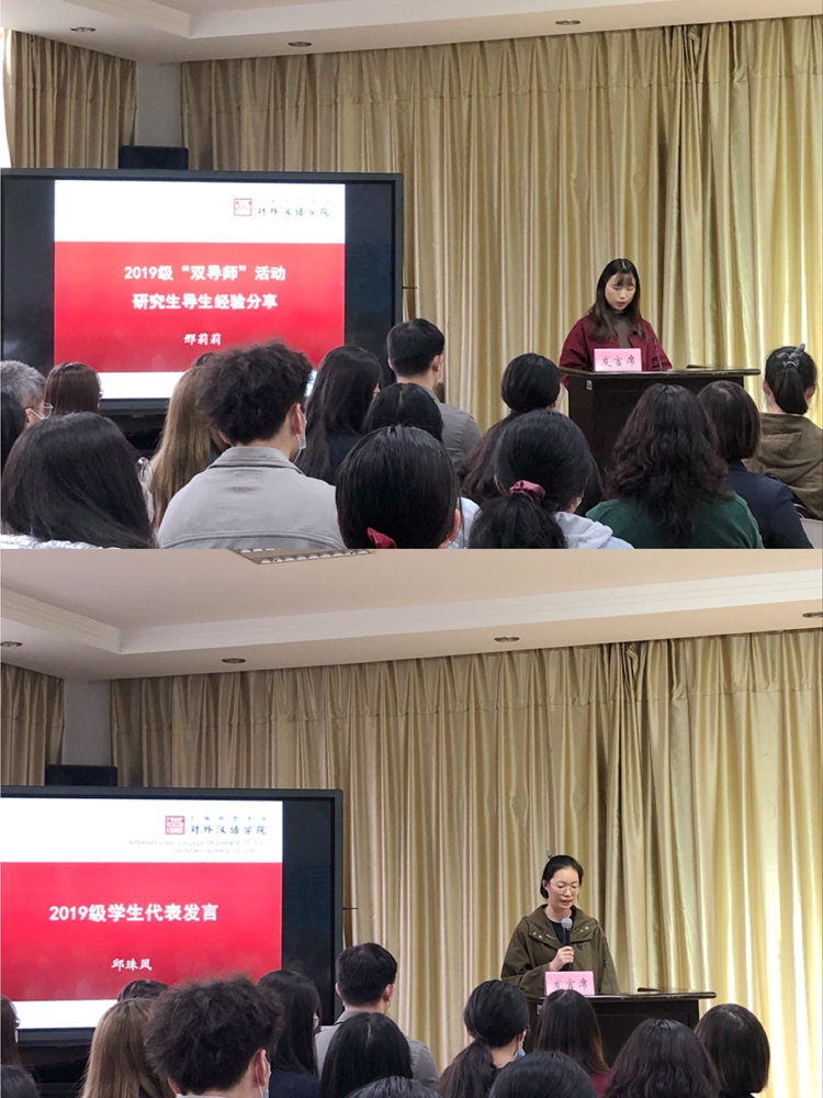 在随后的导生经验分享中,研究生导生刑莉莉也认为,双导师结对中新生应当主动联系导师导生,作为研究生导生也应主动加强与本科新生的交流,积极开展各类特色活动,为新生提供相应的帮助。作为2019年“双导师”活动的参与者,本科生邱珠凤同学着眼于导师对她的帮助与关爱,分享了她和导师间的温暖故事,她的言语中饱含对导师们的感恩与敬佩。