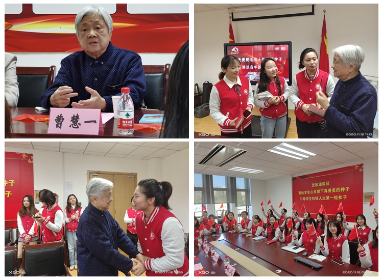 11月12日上午,为纪念中国人民志愿军抗美援朝出国作战70周年,铭记抗美援朝战争的艰辛历程和伟大胜利,弘扬伟大的抗美援朝精神,马克思主义学院邀请抗美援朝老战士曹慧一同志为马院学子讲述当年战斗故事。校离退休工作部部长唐娟芳、副部长柏桦,学院党委书记刘凤以及学生党员、入党积极分子代表等参加此次抗美援朝故事分享会。学院党委副书记、副院长孙琳主持。