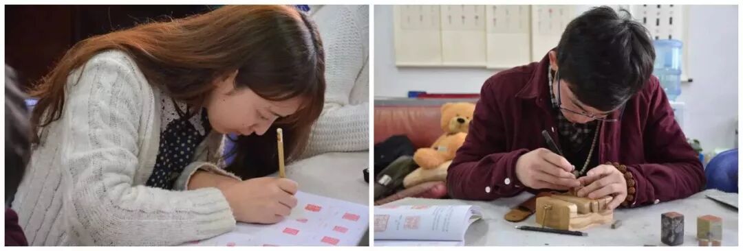 ▲学生在上篆刻课。