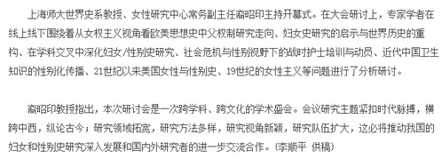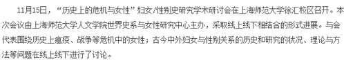 标题:“历史上的危机与女性”妇女/性别史研究学术研讨会在沪举行