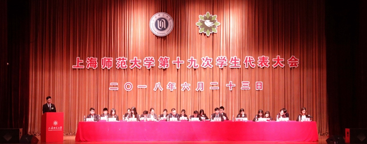 6月23日,上海师范大学第十九次学生代表大会在奉贤校区上师大剧院召开。校党委副书记、副校长葛卫华,市学生联合会执行主席黄佳陈、校团委书记潘黎勇、校学生会秘书长米婷、各兄弟高校代表、研究生会代表及学院团委负责人出席。来自全校17个学院的420名代表参会。
