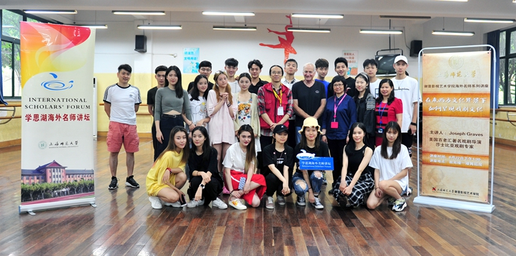 6月22日下午,应我校谢晋影视艺术学院之邀,美国百老汇著名戏剧导演,莎士比亚戏剧专家Joseph Graves(约瑟夫·格雷夫斯)在教苑楼一楼形体房,为学院表演专业师生举行了一场题为《在东西方文化背景下如何呈现戏剧文化》的精彩讲座。