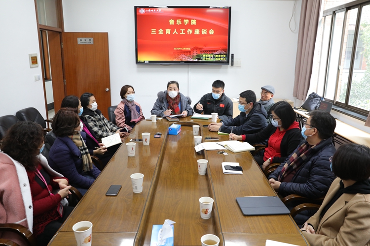 12月9日下午,音乐学院举办“三全育人”系部主任沙龙。院长施忠,院党委书记高亭,副院长明虹以及各系部主任出席。院党委副书记王俊主持沙龙。