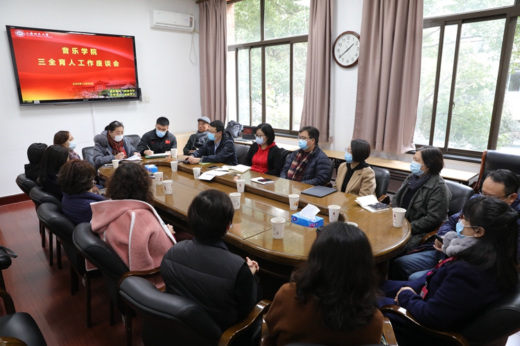 施忠在发言中表示,音乐学院自率先成立“三全育人”办公室、建立院级“三全育人”工作体系以来,各项育人工作都取得了实质性进展。学院要继续以人才培养作为办学立院的根本宗旨,坚持立德树人这一核心使命,开展学生培养过程中要严格把控各培养阶段,积极拓展就业渠道。“三全育人”工作不仅要落地、落实,还要细化、细致、细心。要强化育人制度建设,严格执行班导师制度,加强班导师队伍的管理和监督,将学院“三全育人”工作推上更高台阶。