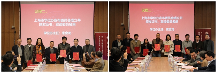 束金龙主任与丁钢主任委员向委员们颁发聘书