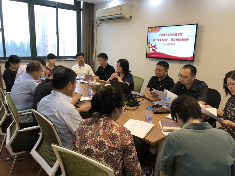 在下午举行的学习研讨板块,院党委围绕《中共上海师范大学委员会关于加强教职工党支部建设的实施意见》精神,着重就教工党支部的建设目标、强化党支部整体功能以及严格落实党建工作制度等内容进行了解读。原现代校长研修中心党支部书记、现初教系系主任王健跟大家分享了支部工作经验。院党委委员、心理系党支部书记蔡丹着重介绍了支部在开展师德师风建设、立德树人以及助推学科发展方面的思考与实践。