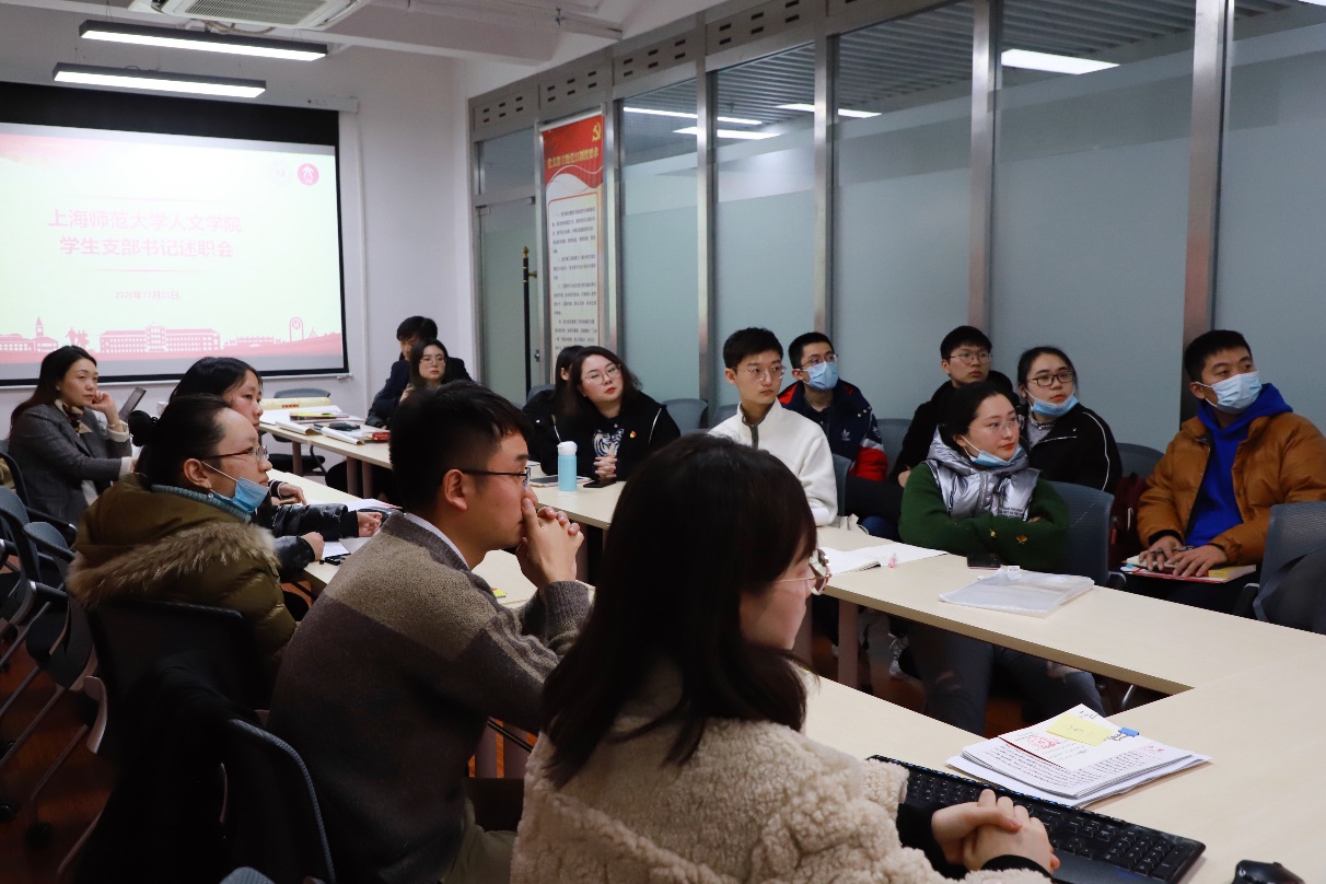 12月23日下午,人文学院优秀四史党课展示暨2020年学生党支部书记述职会在文苑楼904会议室举行。学院党委书记朱政、学院党委副书记陈重来、本研辅导员、学生党支部书记参加会议。会议由学院党委副书记陈重来主持。