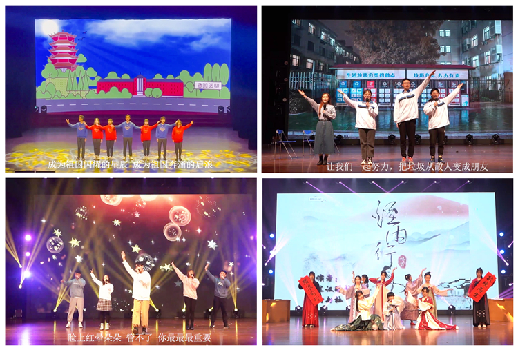 晚会节目精彩纷呈,洋溢着师大学子正值韶华的青春活力,全面展示了师大奋发向上的校园文化。开场舞蹈串烧《Only One Chapter》以灵动的舞姿演绎绚烂的青春岁月。影视与传媒学院情景朗诵《我在湖北》带我们回顾了抗击疫情期间一个个平凡又英勇的故事,展示了师大青年众志成城的同胞情谊,更传递出中国力量和中国精神。一首《只有柠最重要》真情流露,以美妙的歌声拉近了与屏幕前观众的距离。人文学院情景剧《垃圾王国历险记》以生动有趣的形式演绎了垃圾分类背后的故事,呼吁广大同学共担一份责、同尽一份心,使垃圾分类成为了人人皆可为的“举手之劳”。猗兰汉服社和易衡书社合作的《烟雨行舟》尽显中国传统美,清歌妙舞间反映的是中华民族的深厚底蕴和文化血脉。