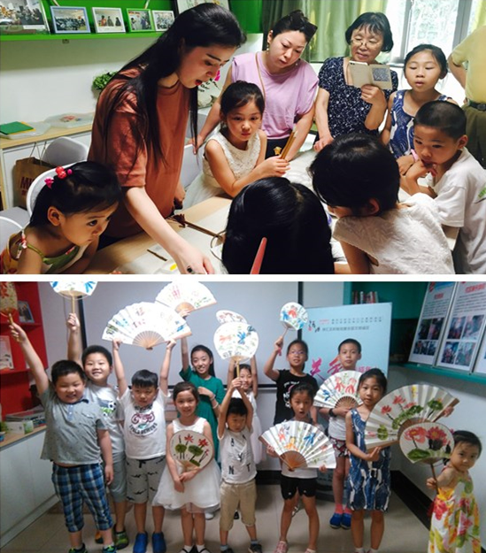 签约仪式后的首次共建活动取得了开门红。由美术学院优秀学生党员代表组成的民艺教学团队充分展现了扎实的专业基础,发挥了美术学院的学科优势,为景泰社区居民进行了扇面画的教学展示,并指导居民完成了自己的扇面作品,收获了热烈的反响。此次活动使得居民们对传统民艺有进一步的了解,激发了大家对我国传统的民间优秀技艺的兴趣。