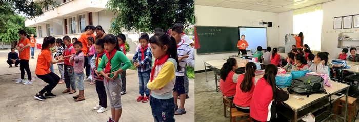 在上海韩哲一教育扶贫基金会的大力支持下,“三下乡”团队为民安小学、朱泾镇希望小学和新平村武警希望小学构建起了“图书角”,希望孩子们可以通过阅读来学习知识、感知世界、开启光明、点燃希望。在条件艰苦的民安小学,“小橙子”们与学校的老师同学一起举行了爱心捐赠仪式,“爱心学校”为留守儿童带去了精彩的爱心课堂和互动表演。《社会主义核心价值观》课程给孩子们普及了祖国的文明和希望,《手语教学—国家》课程激发了孩子们浓浓的爱国深情。“当我把书本递给小朋友,他们露出腼腆的笑容时,现场比我想象中更为震撼,同时我也夹杂着些许庆幸,突然间发觉自己是如此的被期待。第一次觉得,奉献与付出是如此的美好。”团队成员潘梦函说有机会她还会再来看看这些彩云之南的孩子们。