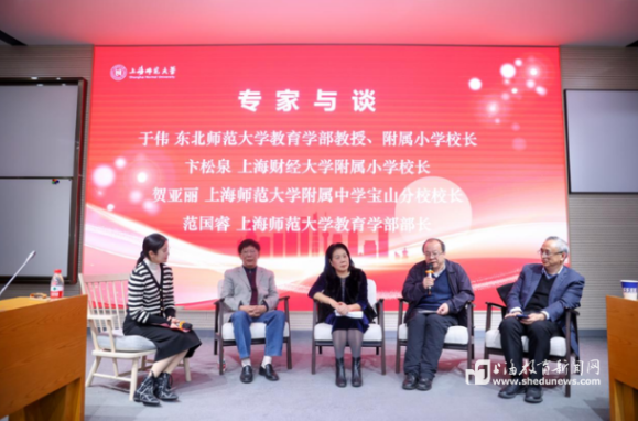上海市教育委员会副主任杨振峰教授,首都师范大学原党委书记、校长孟繁华教授,上海师范大学张民选教授,西北师范大学刘旭东教授,东北师范大学校长助理于伟教授,上海财经大学附属小学校长卞松泉,上海师范大学附属中学宝山分校校长贺亚丽等嘉宾受邀参加报告会,与上海师范大学心理学院蔡丹教授、上海学前教育学院李燕教授、上海师范大学教育