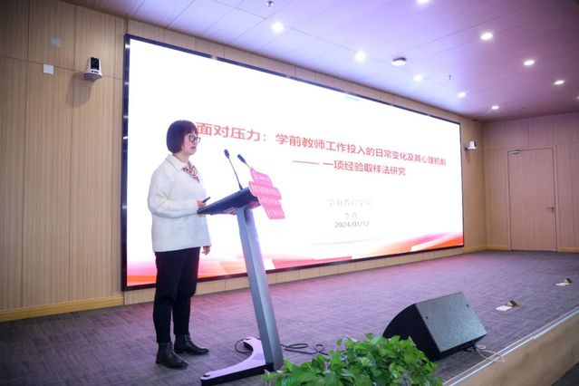 上海学前教育学院李燕教授以“面对压力:幼儿园教师工作投入的日常变化及其心理机制——一项经验取样法研究”为题,分析了幼儿园教师工作时面对不同类型的压力对工作投入的影响,发现幼儿园教师在面对阻碍性压力时,个体产生消极情绪,进而减少工作的投入;而在面对挑战型压力时,积极情绪会更多,进而提高他的工作投入。