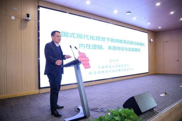 上海师范大学教育学院孔令帅教授以“中国式现代化背景下教师教育高质量发展的内在逻辑、本质特征与实践路径”为题,分析了中国式现代化背景下教师教育高质量发展所应遵循的内在逻辑和基本特征,并从价值引领、制度保障、文化赋能、技术支撑、内外联动等维度提出了教师教育高质量发展的实践路径。