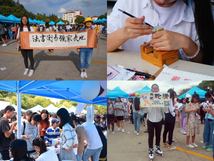 我校现共有126个学生社团,活动现场各社团用极具社团特色的展示吸引同学。文艺类社团大展才艺,乐声悠扬舞姿动人;体育类社团现场展示体育技能,宣传“三走”精神;实践类社团用志愿精神感动学生,以丰富的实践经历吸睛满满;学术类社团充分展现专业内涵,以社团的深度和广度提升吸引力。同时,在现场的表演舞台上有18个社团大展身手,展现歌舞、武术、跆拳道、乐器、书画等多种精品社团文化,为学子奉上精彩的文化盛宴。除了表演舞台,本次社团招新增加了展示舞台,供社团集中展示技能、作品与历史,为非表演类社团提供展示内涵的机会。