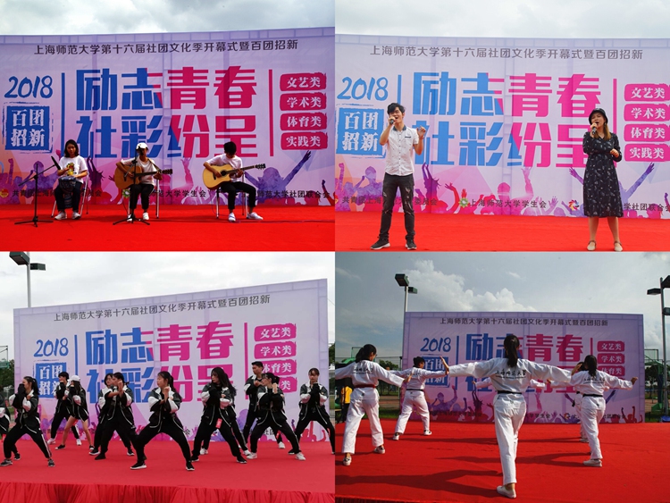 以“励志青春·社彩纷呈”为主题的第十六届社团文化季开幕式暨百团招新于9月26日在奉贤校区举办,当天有实践类、文艺类、体育类、学术类4大类别共百余学生社团参与其中,吸引上千学生驻足参与,传播丰富多彩的社团文化,充分拓展第二课堂的阵地,展示师大校园文化的青春魅力。