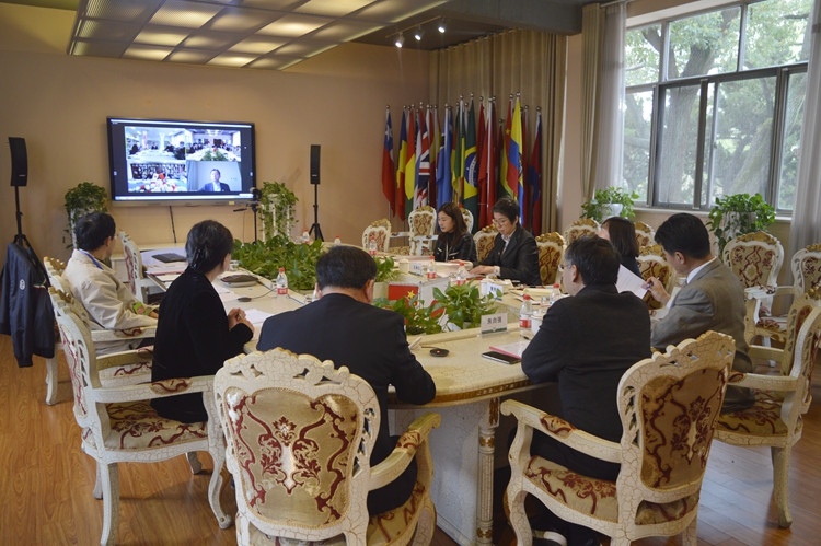 朱自强首先代表上海师范大学对此次理事会的顺利召开表示祝贺,也对千里之外参加此次视频会议的各位嘉宾表示衷心感谢。朱自强表示,过去的一年,尽管受到全球新冠疫情的影响,但是在三所大学的共同努力下,福山大学孔子学院各项工作得以有序运行,并顺利完成了孔子学院的转隶工作,孔院的发展也迎来了新的机遇。此次理事会可以说是一次承上启下、谋划未来的关键会议。他就孔院的发展提出三点思考:一是要继续围绕孔子学院的中文教学和文化交流这一主要任务,发挥三所大学的办学优势,为两国的教育文化交流搭建好平台;二是要发挥三所大学的办学特色,将孔子学院打造成为三校合作的平台,继续促进三所大学的师生交流和合作研究;三是要探索后疫情时代孔子学院的办学模式和发展方向,充分利用现代教育技术和线上教育的优势,拓展教学的内容和范围,为福山大学师生和所在地区提供高水平的服务。朱自强表示,今后上海师大将一如既往地支持孔院建设,并与对外经贸大学、福山大学一道,协助福山大学孔子学院走出独具特色的可持续发展道路。