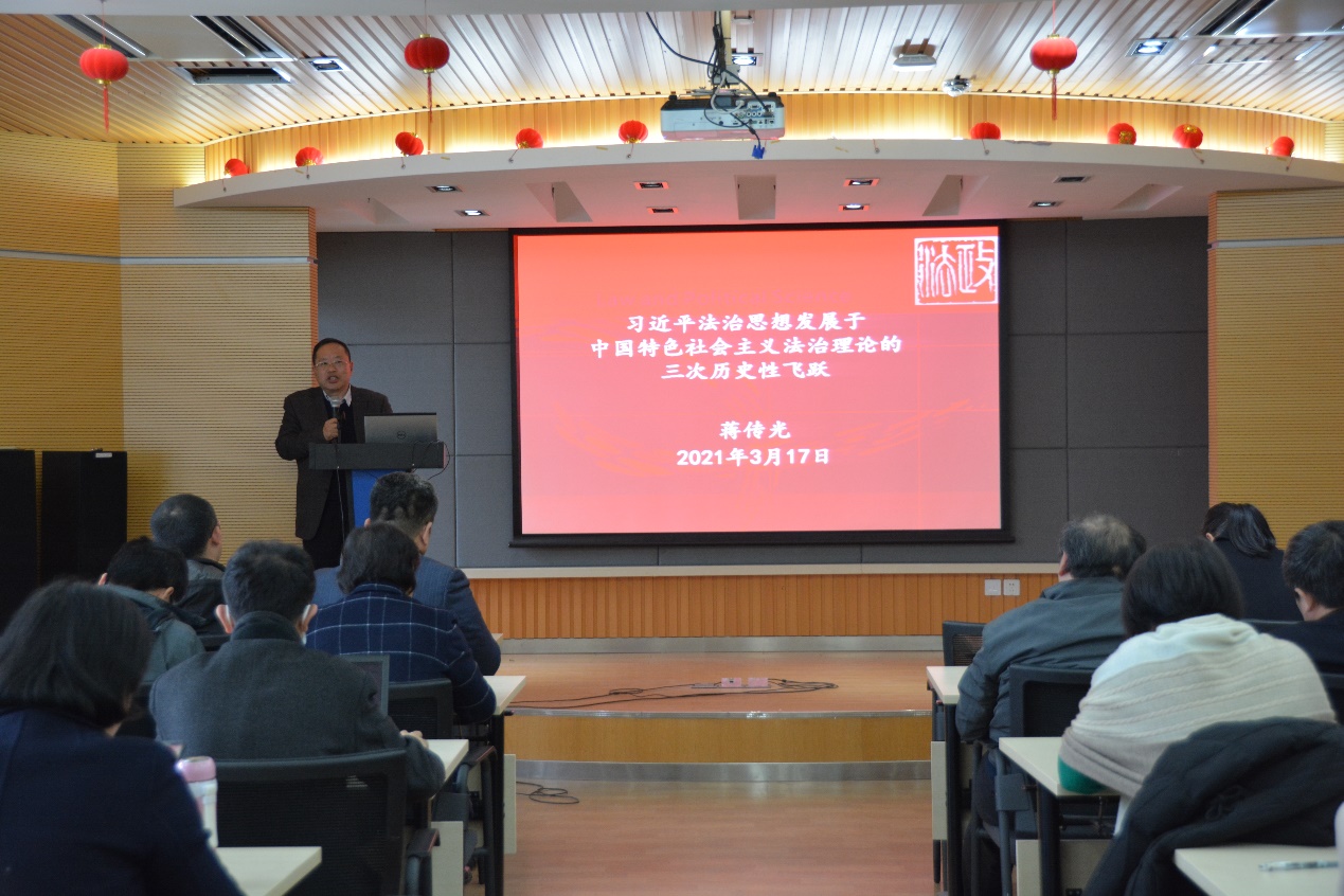 哲学与法政学院蒋传光院长面向全院教职工,做了题为“习近平法治思想发展与中国特色社会主义法治理论的三次历史飞跃”的党史专题报告,通过对习近平法治思想发展的解读,提高了全院教师对中国特色社会主义法治理论的理解。大家纷纷表示在今后的工作中,将满怀“四个自信”,秉承着对社会、对国家、对教育事业的热忱,积极投身于实现中华民族伟大复兴中国梦的实践中去,学思践悟,知行合一。