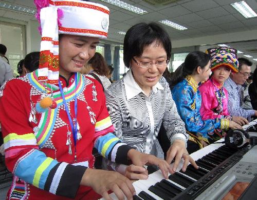 在上海师范大学音乐学院院开学。来自四川、云南、陕西、山西、甘肃、青海、河北、山东、重庆的85名农村小学音乐教师将在上师大为期八天的免费培训,培训内容包括音乐理论学习、数码钢琴实践操作、音乐教学技巧等。