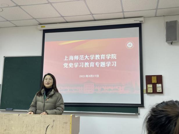 院党委副书记、副院长赵乐着重围绕学生党建工作分享了学习体会。她认为:在学生党员中开展党史学习教育,可以让学生党员们明白我们党和国家从何而来,为何而来,去往何处,让学生党员思考个人在时代发展洪流中自己又该如何抉择,如何奋斗。结合此次党史集中学习,学生党建工作将围绕建党百年华诞主题,打造党史学习“四大思政金课”。通过“入党启蒙微课”、“初心回顾育课”、“社会实践悟课”、“师德戏剧品课”四大金课,让未来教师从学习和实践中感悟党史的智慧和力量,真正做到学史明理、学史增信、学史崇德、学史力行,以昂扬的姿态开创学生党建工作新局面,向建党一百周年献礼。