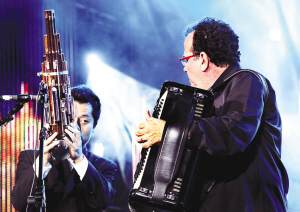 手风琴这种外来乐器与民族乐曲的融合“对话”,手风琴与爵士、流行、探戈等的跨界“对话”,显然已经成为中外手风琴多元发展的现状。被国外手风琴界誉为“天下第一团”的北京市少年宫手风琴乐团虽然由学生组成,却以交响乐的声部演奏。而手风琴协奏曲这种表演形式,昨晚也呈现在观众面前,由指挥家张亮执棒上海师大万方青年交响乐团演奏的《有凤来仪》,独奏乐器采用了手风琴与笙合作的组合。创作这部作品的作曲家高平说:“中国古时称笙的外貌如凤身。手风琴的风箱一张一弛,不也可以想象为凤之展翅吗?古诗曰:‘我有嘉宾,鼓瑟吹笙’,我以这首乐曲献给来自世界各地的朋友们!”