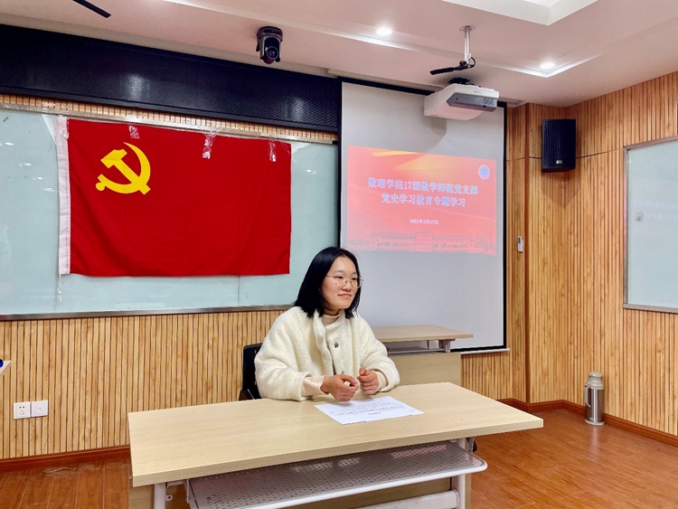 数理学院19个学生党支部是学院基层党组织的重要组成部分,在本次党史学习教育中也积极讨论,集思广益。本科生17级数学师范党支部的张晨雨表示:“推进百年的奋斗征途,深刻学习领会党的理论,用其武装头脑,才能更好迎接未来学习和工作上无数不可预见的挑战。”研究生2019级第四党支部张笑涵也用这样的话语激励自己:“在学习党史时,我们应该做到学有所思,学有所悟,学有所得,学习千千万万前辈不畏艰难、勇往直前的精神,坚定自己作为共产党人的初心和使命”