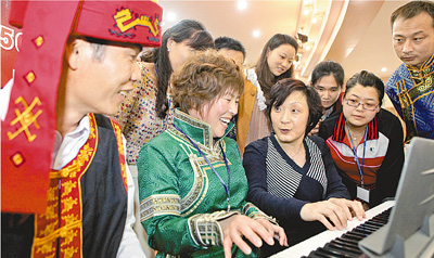 4月11日,上海师范大学音乐学院副院长田晔在辅导来自海南、内蒙古的少数民族乡村音乐教师。