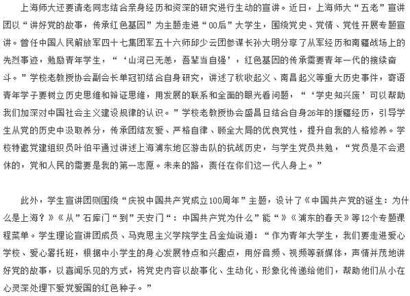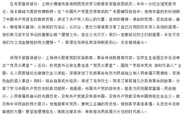 标题:讲好百年党的故事:上海师大成立百人宣讲团