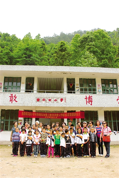 上海师范大学老年大学的学员们和永嘉石公田小学的学生们合影。 朱清风 摄