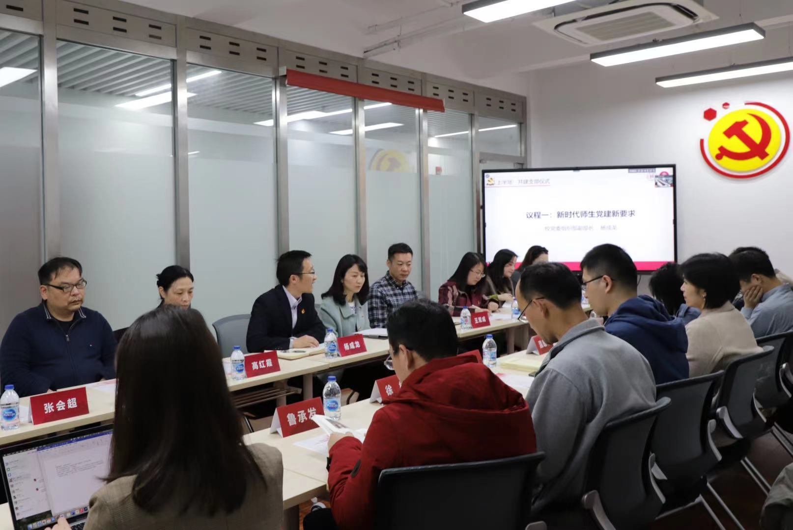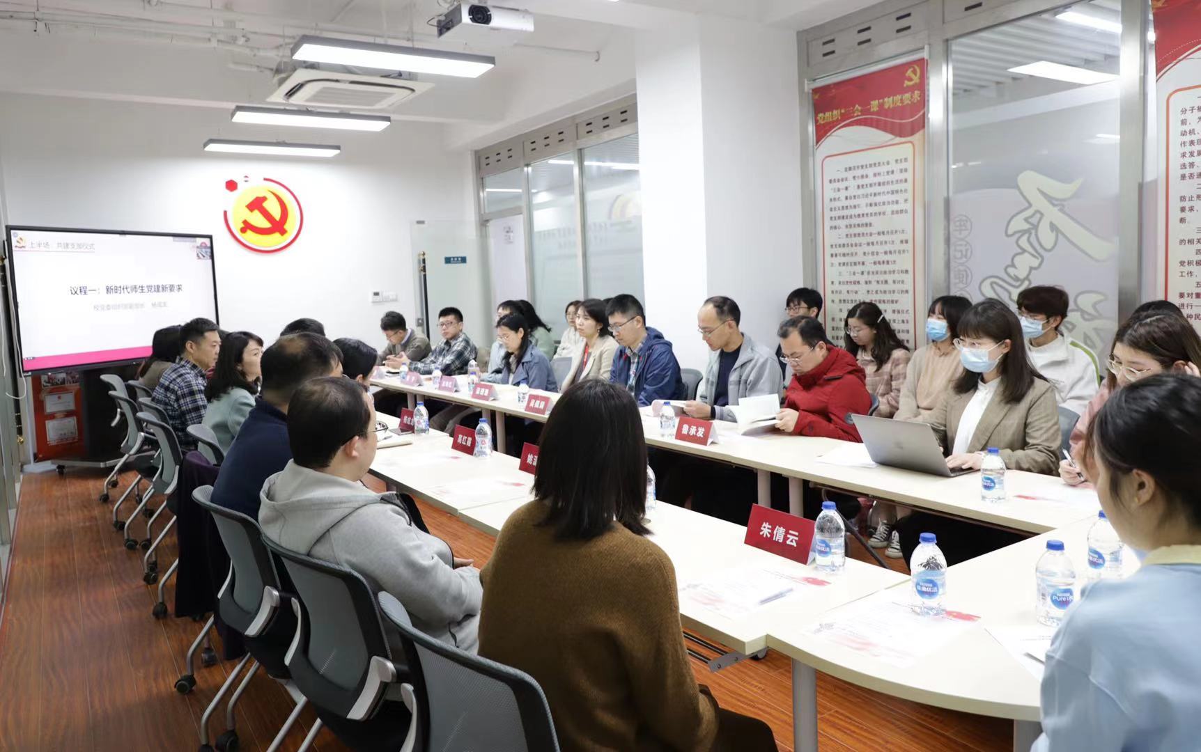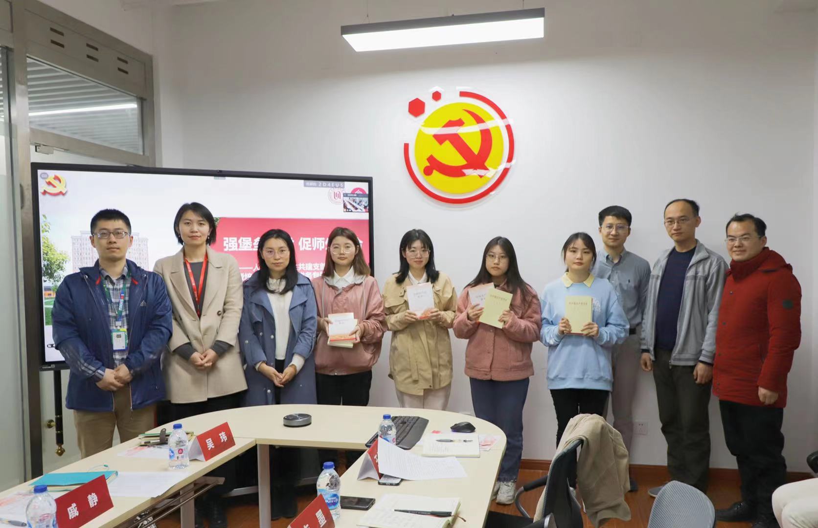 陈重来宣读党员教师进学生支部名单。学院7名党员班导师以组织关系转入的方式进入奉贤2018级、2019级、2020级本科学生党支部,进一步发挥党员教师在思想引领和立德树人中的作用。会上,党员班导师为共建支部的入党积极分子授予《中国共产党简史》等书。