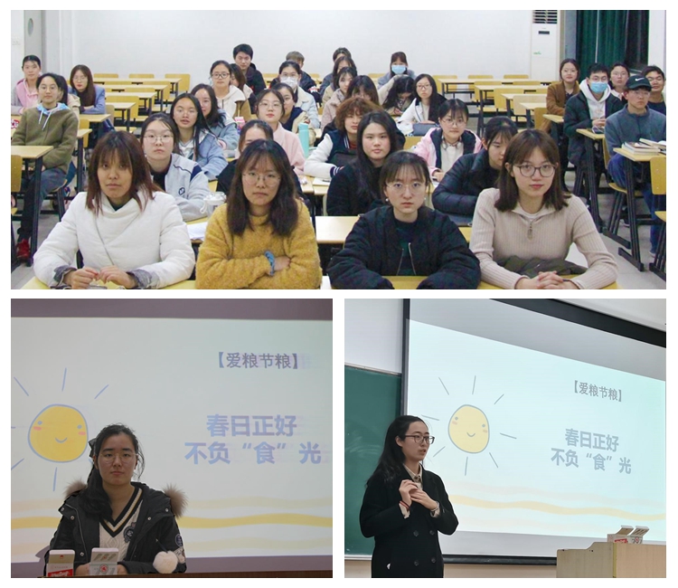 在此次宣传活动中,2020级1班班导生和生活部部长向全体2020级同学讲述趣味粮油知识,与同学们一起学习2021年中央一号文件中有关爱粮节粮的内容。在开展线下专题宣传活动的同时,对外汉语学院还利用网络媒体,充分结合本学院特色,以推送的形式整理出体现“爱粮节粮”精神的古诗词,让同学们可以更直观地感受节约粮食这一中华民族传统美德。为提高同学们的参与度,学院还开展了“勤俭节约,爱粮节粮”的知识问答和“传承光盘美德,外汉学子在行动”主题实践活动。通过答题和拍摄饭后的光盘照片这些方式,同学们可以切实体会到爱粮节粮的真正含义。