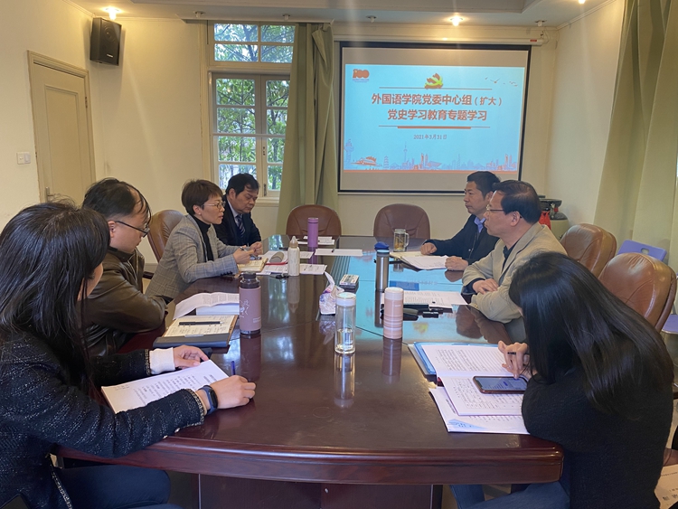 3月31日下午,外国语学院党委中心组(扩大)开展第二次党史学习教育专题学习,围绕市委讲师团党史学习教育专家宣讲团成员、中共一大纪念馆党委书记、馆长薛峰所作的《中国共产党是怎样炼成的》专题开展集中学习研讨,学院党委委员、班子成员悉数出席了此次学习,会议由外国语学院党委书记李凤主持。