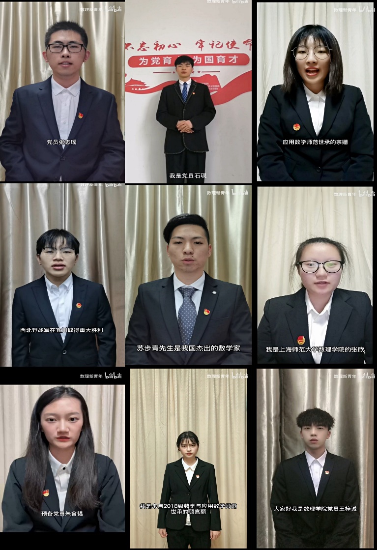 为迎接中国共产党的百年华诞,深入学习贯彻习近平总书记在党史学习教育动员大会上的重要讲话精神,引导青年大学生深入学习党史、铭记党史,帮助青年认识党的性质、理解党的宗旨、传承党的作风、坚定理想信念,数理学院自3月起在B站“数理新青年”官方号推出“数理党员讲述党史上的今天”微党课活动,带领全院师生一同回顾党的百年光辉历程。在此活动中,每月都将邀请数理学院的优秀党员录制视频,为青年学生讲解中国共产党的百年历史,旨在引导青年学子们在学史明理中学懂弄通做实习近平新时代中国特色社会主义思想;在学史增信中坚定理想信念,增强对中国特色社会主义的道路自信、理论自信、制度自信和文化自信;在学史崇德中赓续中国共产党人的精神血脉,激发干事创业的精气神;在学史力行中知行合一,学以致用。