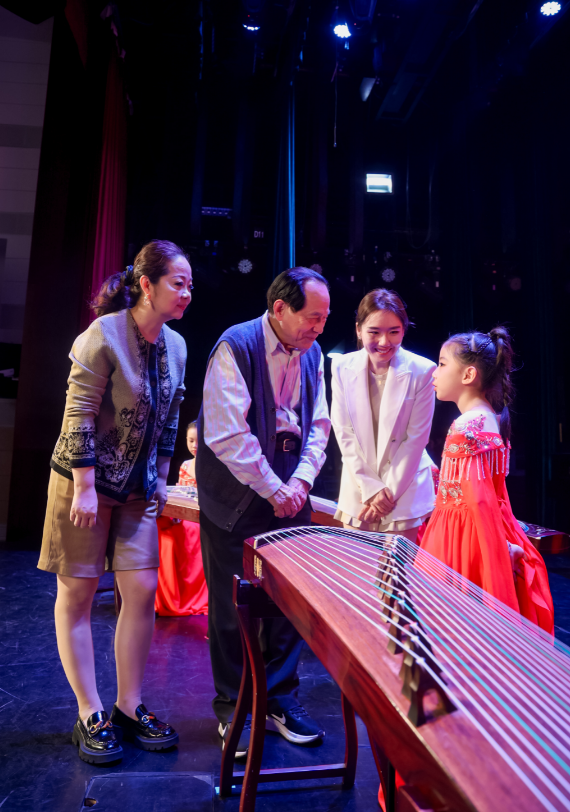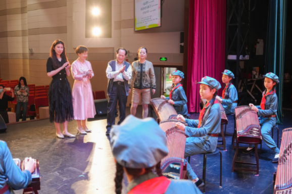 来自“175教育”的“一起舞”筝团的小演员们身着朝鲜族的服饰,带来鲜明的民族气息。由上师大2002届张珏巍和姜雪文指导演奏的《道拉吉》《苹果熟了》,分别是何占豪于2023年和2005年为少年琴童而创,展现劳动人民欢庆丰收的喜悦之情。