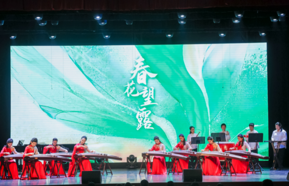音乐会在莘松中学“松韵”筝团演奏的《春花望露》中拉开帷幕,该曲是何占豪于1994年根据江中清先生创编的同名台湾民谣改编而成。轻快优美的旋律,描绘出春天万物复苏、百花争春的景象。松莘中学“松韵”筝团由上师大2014届校友龚路、2017届校友陈怡沁指导。