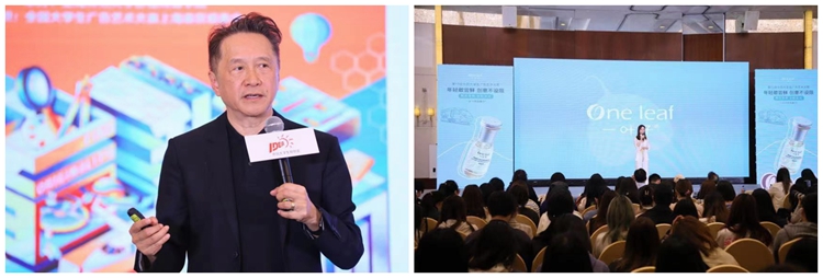 在一阵阵热烈的掌声和欢呼声中,知名广告人、“中国广告四大教父”之一、全国大广赛评委主席、MATCH马马也文化传播创始人/CEO莫康孙先生为同学们带来了一场名为《创意action》的主题讲座;上美集团副总裁刘明,一叶子品牌总监洪洋,介绍了上美集团,并深度解读了一叶子品牌命题,刘明副总裁还鼓励同学们在天马行空的想象中,将一叶子的产品及品牌理念以全新的视角解读,并借由文字、图片、视频、策划案等方式鲜活呈现。她预祝同学们在大广赛的比赛中脱颖而出。