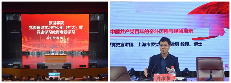 党员干部率先学。4月初,学院党委理论学习中心组(扩大)学习会暨党史学习教育专题学习的首场报告在小剧院举行。特邀中共上海市委党校中外政党比较研究中心主任、党史党建教研部教授周建勇作“中国共产党的奋斗历程与经验启示”专题报告。周建勇以中国共产党的奋斗历程为主线,结合重要历史节点,对中国共产党始终坚持马克思主义基本原理与中国具体实际相结合的历史性贡献作了深入解读,深入阐述了中国共产党历史上形成的优良传统和革命精神,进一步帮助全体师生党员感悟百年党史,汲取力量智慧、经验启示。